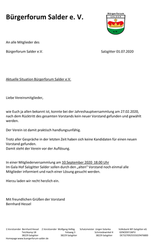 Mitgliederversammlung 10.09.2020 18:00 Uhr im Galahof